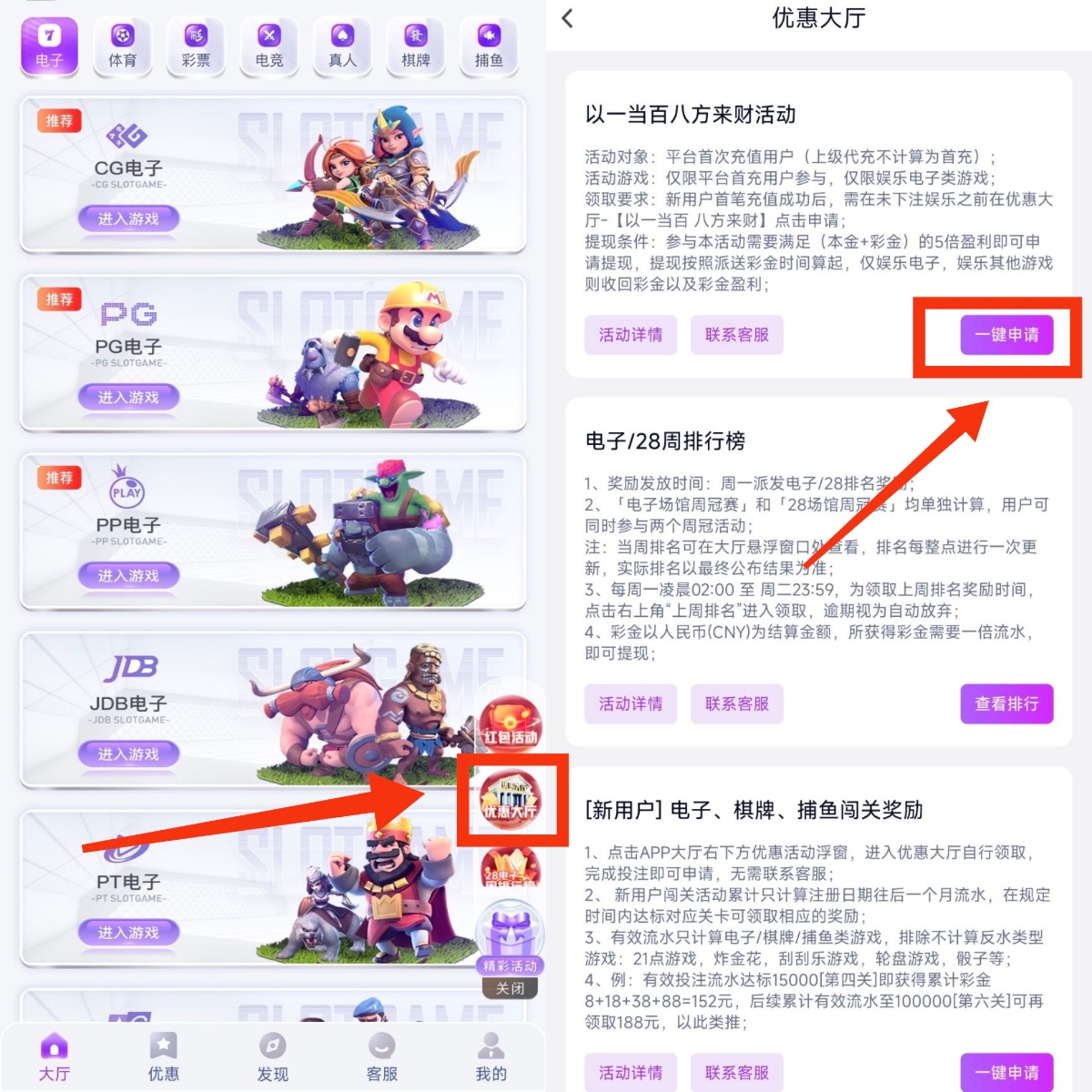 充值后未下注前活动里自助申请
